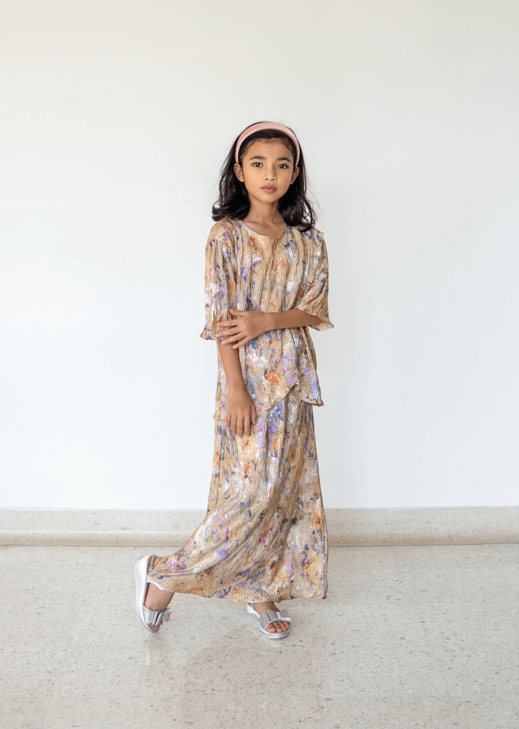 The Harper Kurung in Metallic Gold is designed to make a subtle statement. Crafted from a luminous fabric with a soft metallic sheen, this timeless silhouette blends classic elegance with a modern edge. Featuring a flattering, relaxed cut for all-day comfort, the Harper Kurung drapes beautifully while maintaining a polished look.