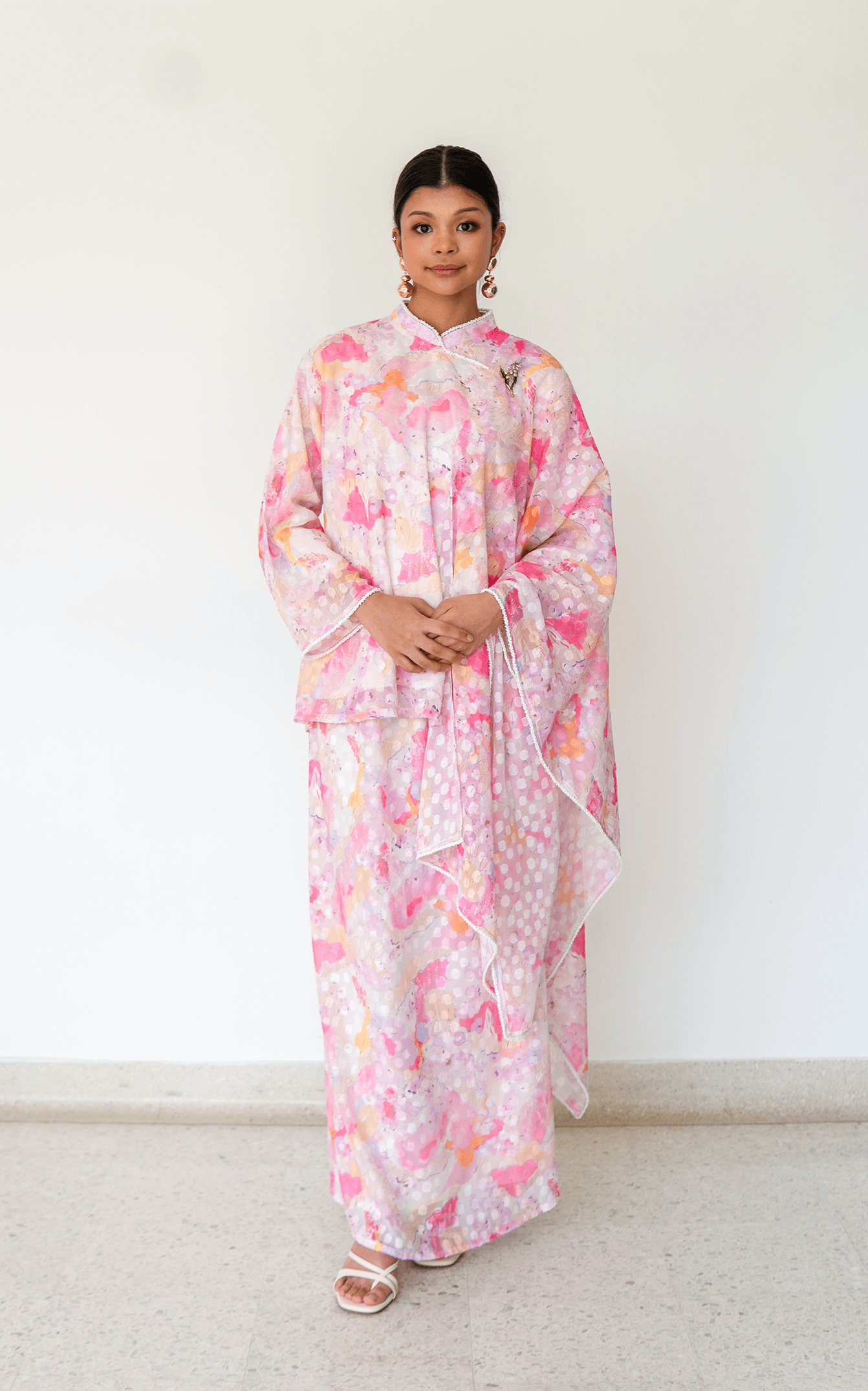 Introducing our very first scarf collection. Designed in a soft, subtle pink hue, Lucy floral scarves feature delicate patterns that add a gentle touch of femininity. The muted floral motifs blend seamlessly into the base tone, creating a refined and understated look that complements both casual and dressier outfits.