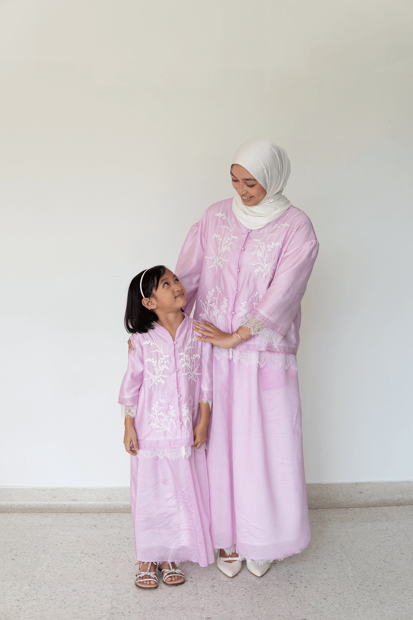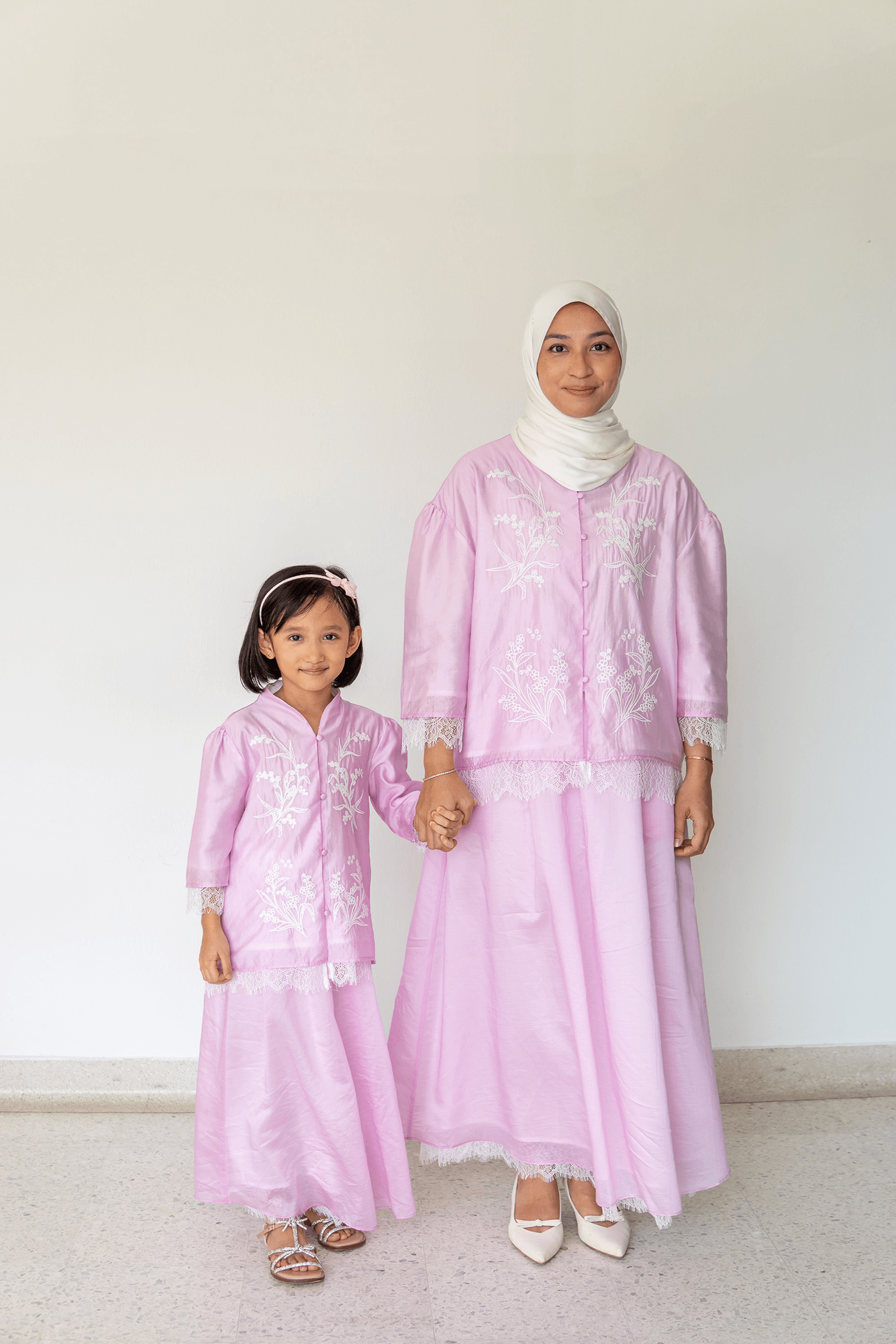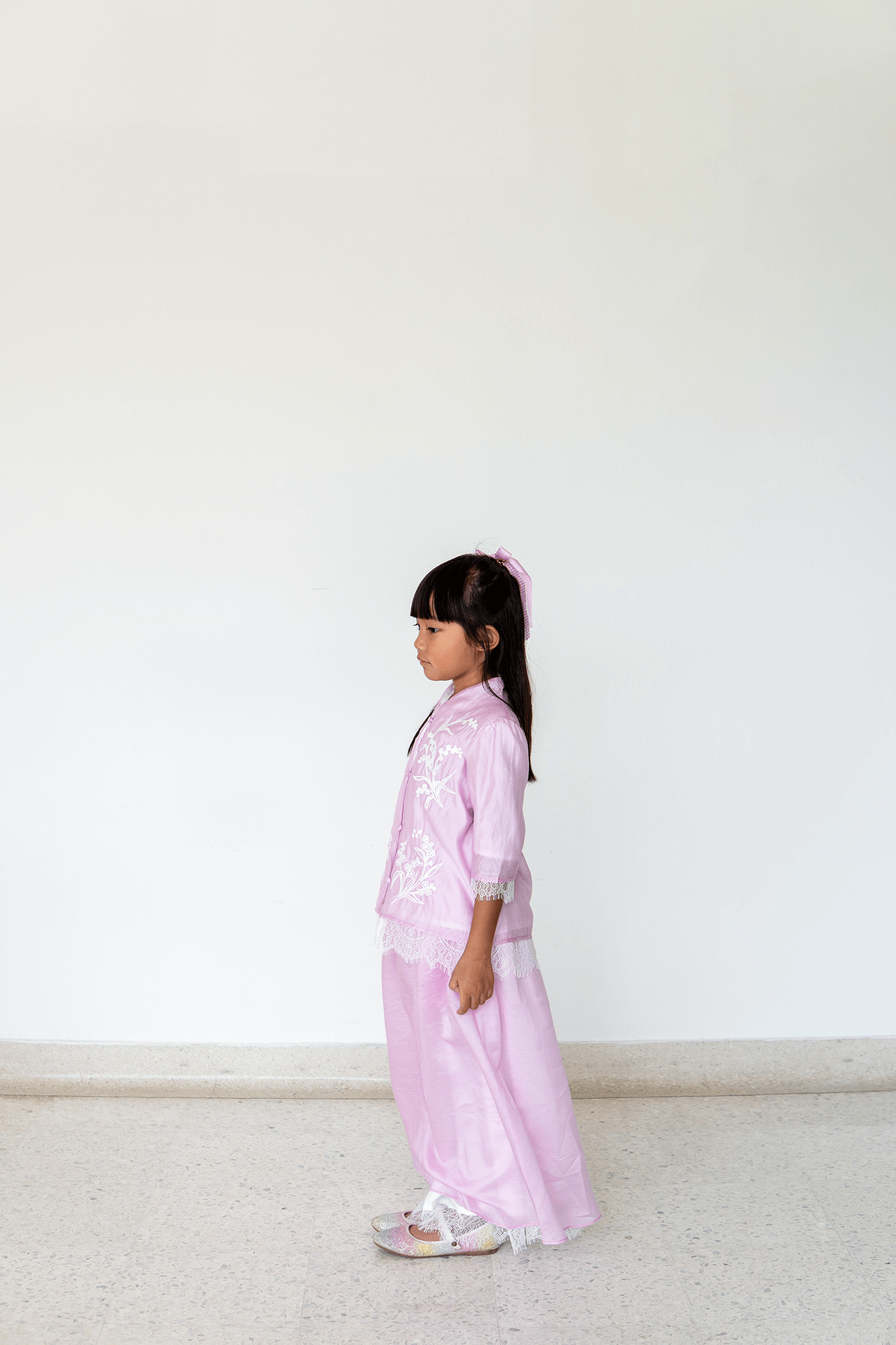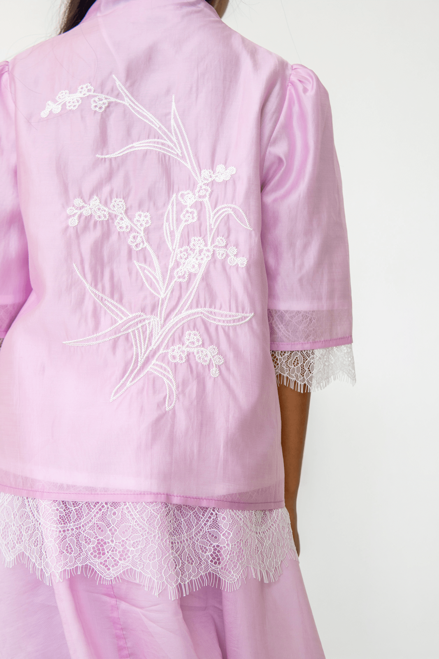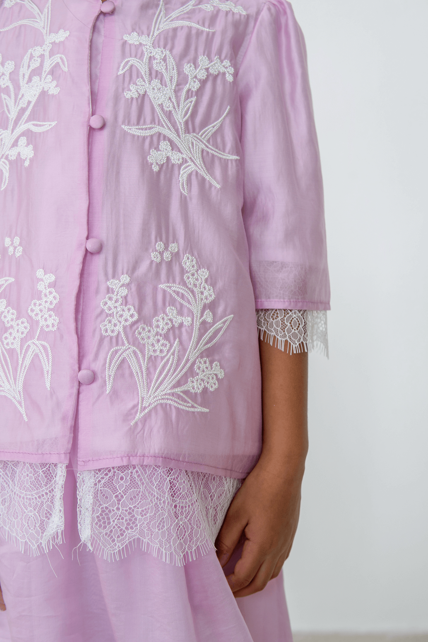 Meet Sienna, a tailored outfit in sumptuous soft fabric, adorned with intricate embroidery and delicate lace accents for a refined, couture-inspired look.